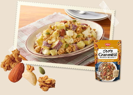 全体がなじんだら、ごろグラ Gran meal、1cm角に切ったクリームチーズを加えてさっくり混ぜる。