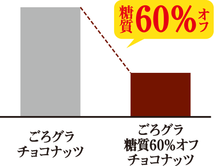 「ごろグラ チョコナッツ」と比較して糖質60%オフ。
