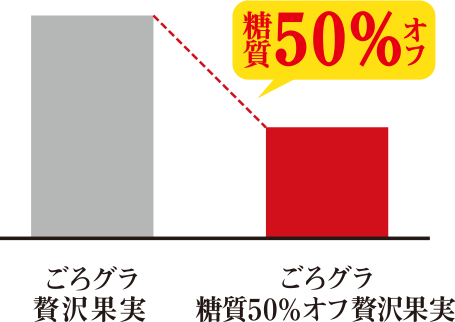 「ごろグラ 贅沢果実」と比較して糖質50%オフ。